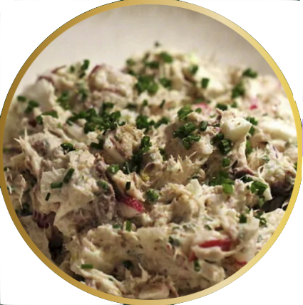 | Bornholmersalat af røget makrel med purløg og spirer. | |
