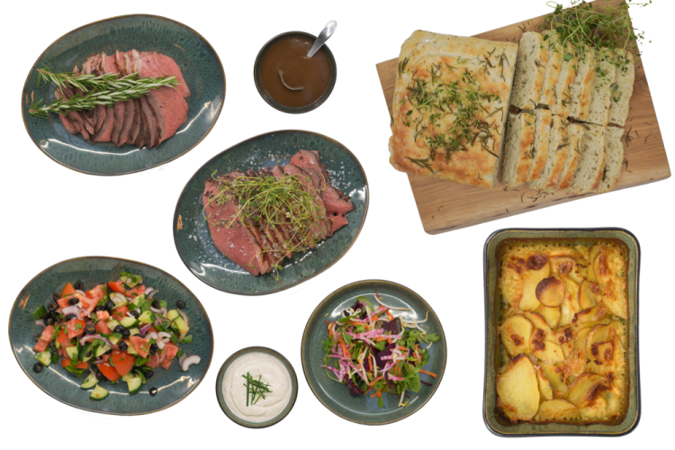 | Tomatsalat med agurk, rødløg, oliven og persille | |
